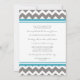 Invitations personnalisées pour le dîner des fêtes dans un motif moderne et élégant de zigzags en turquoise bleu, gris et blanc de chevron. Personnalisez le texte pour créer une invitation unique pour votre dîner de répétition mariage. Contactez-nous pour demander un changement de couleur. Disponible dans de nombreux produits mariages correspondants.