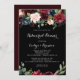 Cette invitation à la répétition botanique noire rustique est parfaite pour une journée classique avant le dîner de répétition mariage. Le design est composé de fleurs bordeaux, rouges, navy, bleues et rousses rayonnantes et gracieuses peintes à la main dans un arrière - plan noir, inspirant beauté naturelle.