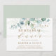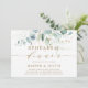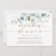 Cette invitation au dîner de répétition comprend de l'eucalyptus aquarellé, des feuilles vertes botaniques et des feuilles de paillettes d'or avec un script doré.