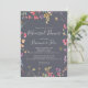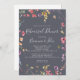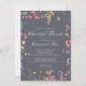 Cette invitation classique à la répétition florale bleu sauvage est parfaite pour une répétition mariage rustique. Le design présente des fleurs sauvages jaunes, violettes et blanches avec du feuillage dans un arrière - plan rose et vert aquarelle.
