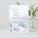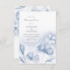 Cette faire-part de mariage moderne et élégante en bleu poussiéreux présente un design original d'aquarelle exquis de fleurs douces et jolies dans des teintes délicates de bleu poussiéreux. L'oeuvre d'art enchanteresse saisit la beauté et la sérénité de la nature, donnant un ton romantique à votre journée spéciale. Cette invitation est conçue comme un modèle pour une personnalisation en ligne sans effort, ce qui rend simple l'ajout de vos propres détails de dîner de répétition. Célébrez votre amour dans le style avec cette incroyable invitation à dîner de répétition personnalisable, parfait pour les couples qui veulent partager leur histoire avec grâce et charme.
