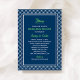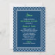Cette invitation de dîner de répétition nautique amusante et festive présente un graphique de bateau à moteur sportif en vert sur un fond marine gras, encadré par une bordure de treillis en losange élégante. La typographie d'accent vert vif ajoute une touche de couleur fraîche et prépa. Tous les noms, dates et détails de l'événement sont entièrement modifiables. Un excellent choix pour un dîner de répétition de mariage en bateau, au bord d'un lac ou sur la côte.