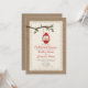 Une invitation à la répétition mariage en plein air / rustique avec un thème sauvage / camping illustrant une lampe à huile rouge accrochée à une branche d'arbre avec des feuilles verts. Le Arrière - plan à l'avant et à l'arrière est inspiré des burlap. Le design de l'avant est inspiré de la dentelle. Personnalisez le texte avec vos informations.