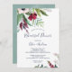 Cette invitation à la répétition de la brise tropicale est parfaite pour une répétition mariage de printemps ou d'été élégante. Le design floral présente des fleurs rouges, bordeaux, rousses et blanches sur un lit d'eucalyptus aquarelle et une végétation tropicale à l'atmosphère hawaïenne détendue.