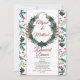 Épinette et pin vert olive vifs, verdure sainte et eucalyptus avec baies vitrées rouges et framboises saintes arborent le décor "Rehearsal Dinner" sur un panneau blanc avec des bandes de bordure rouge canneberge bouchées sur un arrière - plan blanc. Le dos est doté d'un arrière - plan à motifs coordonnés sur un rouge de canneberge profonde. Élégant et élégant pour vos occasions spéciales.