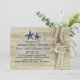 Invitations pour le dîner de répétition sur la plage rustique avec la vieille corde nautique, le bois flottant et le texte de la marine plus le couple d'étoiles de mer de la marine