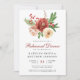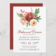 Terracotta Blush Pink Blanc Floral Pine de Noël Pousse de feuillage Répétition Dîner Carte d'invitation avec photos. Tous les textes sont pré-arrangés pour que vous personnalisiez facilement et rapidement avec vos propres détails.