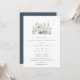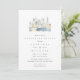 Cette invitation à dîner de répétition moderne présente une aquarelle de New York City skyline scène au sommet d'une typographie chic