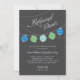 Cette invitation fraîche et festive pour le dîner de répétition présente une charmante guirlande de lanternes en papier bleues, vertes et aqua sur un fond gris charbon riche avec des guirlandes lumineuses délicates. La typographie argentée ajoute une touche finale élégante à la palette de couleurs côtières fraîches. Tous les noms, dates et détails de l'événement sont entièrement modifiables. Un choix parfait pour un dîner de répétition de mariage côtier, nautique ou de jardin.