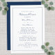 La conception classique du dîner de répétition de mariage présente une écriture élégante en bleu marine romantique sur un fond blanc croquant. Le dos de l'invitation correspond et est uni en bleu. Le texte convient à une cérémonie de mariage traditionnelle et formelle à l'église. Utilisez le modèle moderne simple pour remplacer le texte d'exemple par vos informations. Les demandes de couleur personnalisée sont acceptées. Contactez-moi à invitationsuites@gmail.com ou utilisez le lien de message dans cette liste si vous avez des questions ou avez besoin d'aide avec ce design ou l'un de nos designs.