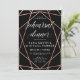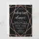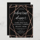 Ces invitations à dîner ultra-élégantes et élégantes de répétition présentent un design géométrique en or faux rose sur un arrière - plan noir dramatique, et comprennent une typographie calligraphique blanche moderne.