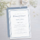 Un design d'invitation de dîner de répétition de mariage en bleu poussiéreux et blanc simple et chic présente un design contemporain minimaliste simple avec une double bordure encadrée en bleu poussiéreux sur un fond blanc croustillant. Personnalisez le design de mariage avec vos détails en lettrage tendance et en script en bleu. Le dos correspond à un bleu uni. Pour de meilleurs résultats, remplacez les détails du modèle par vos propres détails en laissant de l'espace entre les paragraphes comme dans l'exemple et utilisez toutes les lettres minuscules où cela est spécifié. Envoyez un e-mail à invitationsuites@gmail.com pour toute question ou demande personnalisée.