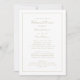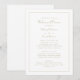 La conception classique du dîner de répétition de mariage présente une écriture élégante de couleur dorée classique sur un fond blanc croquant. Le dos de l'invitation correspond et est entièrement blanc. Le texte convient à un événement de mariage traditionnel et formel à l'église. Utilisez le modèle moderne simple pour remplacer le texte d'exemple par vos informations. Les demandes de couleur personnalisée sont acceptées. Contactez-moi à invitationsuites@gmail.com ou utilisez le lien de message dans cette liste si vous avez des questions ou avez besoin d'aide avec ceci ou l'un de nos designs.