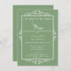 Invités Invitations à votre dîner de répétition avec une invitation à dîner mariage Moss Green Peacock Flourish. Le design de l'invitation présente un élégant paon orné de fleurs. Personnalisez avec les noms du marié et de la mariée avec les détails du dîner de répétition. Papier à lettres mariage supplémentaire disponible avec cette conception aussi.