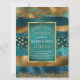 Brosse turquoise et or brokies de peinture et confetti mariage de répétition dîner nvitation. Cet élégant design affiche des touches de pinceau en bleu turquoise et or et confetti. Votre texte est dans un cadre turquoise avec une bordure dorée. Il est idéal pour un mariage d'hiver.