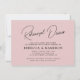 Cette simple invitation à un dîner de répétition mariage présente un texte élégant sur un arrière - plan léger et blush.
