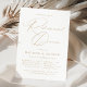 Nos invitations à des dîners de répétition modernes comprennent les mots "Dîner de répétition" affichés dans un élégant script de calligraphie dorée avec un arrière - plan blanc (ou la couleur de votre choix). Personnalisez les invitations au dîner de la répétition d'or avec vos noms, la date, les informations de la répétition et les détails du dîner. L'invitation chic est parfait pour des dîners de répétition décontractés et formels.