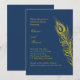 Une plume de paon légère et feutrée orne cette invitation d'une nouvelle façon chic. Cette invitation à dîner de répétition fait partie de la collection mariage complète Shake your Tail Feathers, et est disponible dans une variété de couleurs. Il est montré sur le papier de base; cependant, je recommande le poids et la texture du papier de lin.