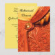 Invités Invitations à une célébration pré-mariage en l'honneur de la mariée et du marié avec la charmante Western Saddle Mariage campagnard de répétition Diner Invitation. Cet invitation décontracté à la grange de style ranch personnalisé présente une photo de ferme rapprochée d'une selle de cheval en cuir à outils marron et jaune avec un design feuille complexe.