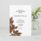 Invitation vos amis et votre famille à un dîner pré-mariage en l'honneur de la mariée et du marié avec la naturel Leaf Stamp Mariage Rehearsal Diner Invitation. Customisez-le avec le nom personnel de la mariée et du marié et des informations spécifiques du parti. N'hésitez pas à modifier le texte, la police ou le type de papier pour qu'il corresponde à vos besoins nuptiaux. Cet invitation de la fête de la répétition mariage d'automne est décoré d'un timbre brun numériquement d'une photographie naturelle de Feuilles d'érable coréens; parfait pour un thème mariage de feuille de septembre, octobre ou novembre automne ou automne.