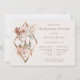 Invitation à dîner de répétition avec des lamas de mariée et de mariée ornés de fleurs de crème, brune, or et rose pastel.