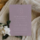 Cette invitation de la collection Shylah à la répétition géométrique en lilas monogramme est parfaite pour une répétition mariage classique. Le design mauve rose simple se compose d'un monogramme ovale géométrique avec les initiales du couple et d'une touche minimaliste moderne.