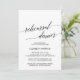 Cette élégante carte d'invitation à la répétition de calligraphie blanche et noire est parfaite pour un événement simple. Le design neutre présente une carte minimaliste décorée de typographie romantique et fantaisiste.