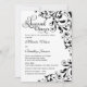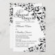 © Designs socialites. Une élégante invitation en noir et blanc avec de magnifiques tourbillons décoratifs d'angle prêts à être personnalisés pour votre événement spécial. Le style de police, le texte et le type de papier peuvent être modifiés. Vous avez besoin d'aide pour customiser des produits ou d'autres produits avec cette conception? N'hésitez pas à contacter Socialite Designs.