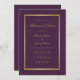Invitation vos invités de répétition mariage dans le style avec cette élégante invitation monogramme personnalisée. Le design moderne présente un script en faux or avec tous les détails de votre dîner pour personnaliser bordé d'un cadre en faux or brillant sur un arrière - plan prune violet. Meilleurs voeux pour votre mariage et mariage ! Conçu par Susan Coffey.