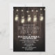 Bois de grange rustique + Mason Jar Rehearsal Invitations - présente le bois de grange récupéré comme l'arrière - plan et la pendaison des jarres de mason éclairé avec des lucioles ou juste des lumières simples. Les jarres de mason sont enfilées sur des lampes à cordes.