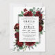 Le design présente des pivoines aquarelles et des éléments floraux roses dans les tons rouge et bordeaux sur la végétation botanique d'eucalyptus. Le modèle est également doté d'un coffret imprimé en argent ou en gris pour une mise en page élégante. La typographie affiche une disposition moderne avec du texte noir. Affichez le lien de collection sur cette page pour rechercher les produits correspondants dans le jeu de mariages.