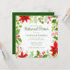 Cette invitation classique à la répétition de Noël rouge et vert présente des fleurs poinsettia vives en bas à droite de votre invitation, des baies saintes et de la verdure en haut à gauche. Une invitation botanique festive et lumineuse pour un mariage de vacances au script vert.