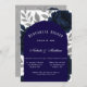 Invitation Dîner de répétition Feuilles Marine Blue Peony & S