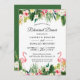 Invitation au dîner de répétition floral aux feuilles tropicales de flamingo.