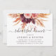 Cette invitation de dîner de répétition présente des fleurs aquarelles rustiques en orange brûlé, or, terracotta, bourgogne, rose blush avec de l'herbe de pampa beige et marron. Pour une personnalisation plus avancée de ce design, veuillez cliquer sur le lien "personnaliser davantage". Des articles assortis sont également disponibles.