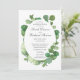 Avec de délicates feuilles d'eucalyptus aquarellées, ce chic carton d'invitation de dîner de répétition botanique peut être personnalisé avec vos informations d'événement spéciales, avec un fond sauge argenté au verso. Conçu par Thisisnotme©