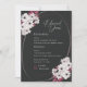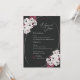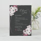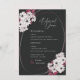 Ces invitations à des dîners de répétition de 5" x 7", mariage, présentent une belle décoration florale dans les tons noir, blanc magenta avec accentuation des formes ovales sur un arrière - plan noir. Espace réservé aux noms de mariée et de mariée, détails du dîner de répétition et de répétition.