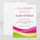 Définissez le ton de votre week-end de mariage avec cette invitation au dîner de répétition Fuchsia & Lime Green Waves, personnalisée avec les noms des mariés, le lieu de l'événement et les détails de RSVP. Conçue pour se coordonner parfaitement avec la collection de mariage Fuchsia & Lime Green Waves, cette invitation présente des vagues abstraites fluides dans des tons fuchsia audacieux et vert citron vif avec un effet de draperie subtil ajoutant de la profondeur et une élégance moderne - capturant parfaitement la palette lumineuse et audacieuse tendance de 2026.