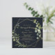 Cette invitation à la répétition géométrique or bleu vert est parfaite pour une simple journée avant que la famille mariage et les amis ne se réunissent pour le dîner. Le design présente de beaux feuilles verts peints à la main dans un arrière - plan bleu foncé, ornant un cadre géométrique doré.