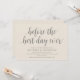 Annoncez votre bonheur toujours après dans le style avec notre design moderne de thème (avant la meilleure journée jamais) mariage de la répétition de la carte d'invitation de célébration. Idéal pour les couples qui ont décidé de célébrer la veille de leur grand jour. Avec son design sophistiqué et ludique, cette invitation vous donnera le ton pour un événement inoubliable. La carte d'invitation présente un design de script moderne, ajoutant une touche d'élégance intemporelle à votre célébration. Conçu par TeeshaDerrick