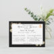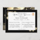 Le design présente un élégant arrière - plan noir avec des roses sépia entourant un rectangle blanc affichant du texte. Le texte est affiché dans le format approprié pour une invitation à dîner de répétition. Une croix dorée entrelacée de deux anneaux mariages est présentée dans le coin supérieur droit. Le dos affiche une grande image d'un beau rose sépia contre un arrière - plan noir. Le design est très agréable à l'oeil.