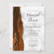Le bord gauche de cette élégante invitation à la répétition mariage moderne comporte une bordure d'aquarelle orange brûlée, ornée d'une fausse parties scintillant dorée. Le texte personnalisable combine écriture manuscrite noire avec polices cuivre et italique sur un arrière - plan en marbre gris et blanc. L'envers est assorti d'une agate orange brûlée et dorée.