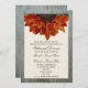Une invitation à dîner de répétition mariage de automne avec une image de bois de bardeaux encadrant le côté avant. Image du tournesol orange du haut. Personnalisez le texte avec les détails de votre occasion. Le côté arrière est l'image en bois d'écorce.