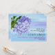 Dîner de répétition mariage des hydrangées bleues. Il présente des fleurs d'hortensia bleu-violet ou d'hydrangée sur des arrière - plans d'aquarelle bleu et lavande violet.