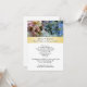 Dîner de répétition florale et invitation de répétition de cérémonie. De jolies hydrangées bleues, blanches et roses forment une bordure fleurie en haut. Une bande d'or a deux lignes de texte et le bas de cette carte de 5 x 7 pouces est blanc avec du texte noir imprimé.