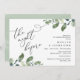 Magnifique Design romantique moderne, dans l'eucalyptus vert feuille aquarelle thème, Dîner de répétition Mariage et carte d'invitation à danser (La nuit précédente). C'est parfait pour votre soirée de célébration de la répétition mariage. Ajoutez les détails de votre célébration. #TeeshaDerrick