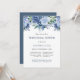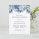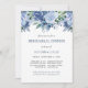 Une belle invitation à dîner de répétition mariage avec une bordure fleurie d'aquarelle luxuriante dans les tons bleu poussiéreux, gris bleu et bleu marine. Le texte est en bleu gris et noir serif. Le revers est une teinte de gris bleu assortie.