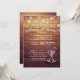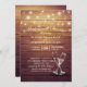 Dîner de répétition mariage Modèles de la carte d'invitation - Lunettes de champagne Vintages et lampes à cordes sur Arrière - plan de bois rustique. Un design parfait pour votre grand jour. Tous les styles de texte, couleurs, tailles peuvent être modifiés selon vos besoins !