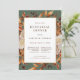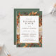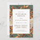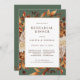 Cet élégant dîner de répétition de mariage comprend des feuilles d'orange brûlée et de terre cuite peints à la main, des dahlias crème et beige, et de beaux roses couleur rouille sur un arrière - plan vert sage. Le dos comprend un bouquet à fleurs et à feuilles assortis. Trouvez les articles correspondants dans la collection Sage Autumn Romance.