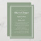 Simple et chic sauge vert et blanc mariage répétition dîner design d'invitation dispose d'un design contemporain minimaliste simple avec une bordure double cadre en blanc sur un arrière - plan vert. Personnalisez le design mariage avec vos détails en lettrage tendance et le script en blanc. Le dos est assorti en vert massif. Pour obtenir de meilleurs résultats, remplacez les détails du modèle par vos propres détails en laissant de l'espace entre les paragraphes comme dans l'exemple et utilisez toutes les lettres de coque inférieures lorsque cela est spécifié. Envoyez un courriel à invitationsuites@gmail.com avec des questions ou des demandes personnalisées.